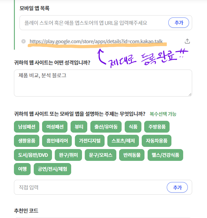 쿠팡파트너스 가입 첫 난관인 모바일 앱 목록 등록하기