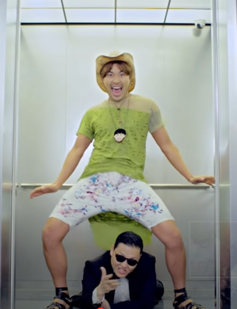 and Psy is pretending to be calm with gangsters.
