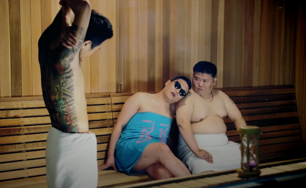 and Psy is pretending to be calm with gangsters.