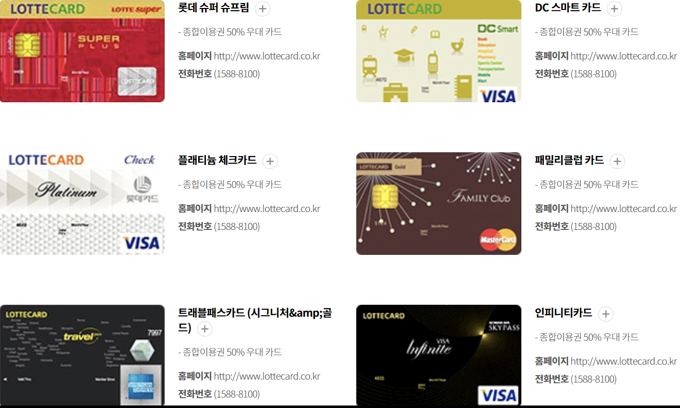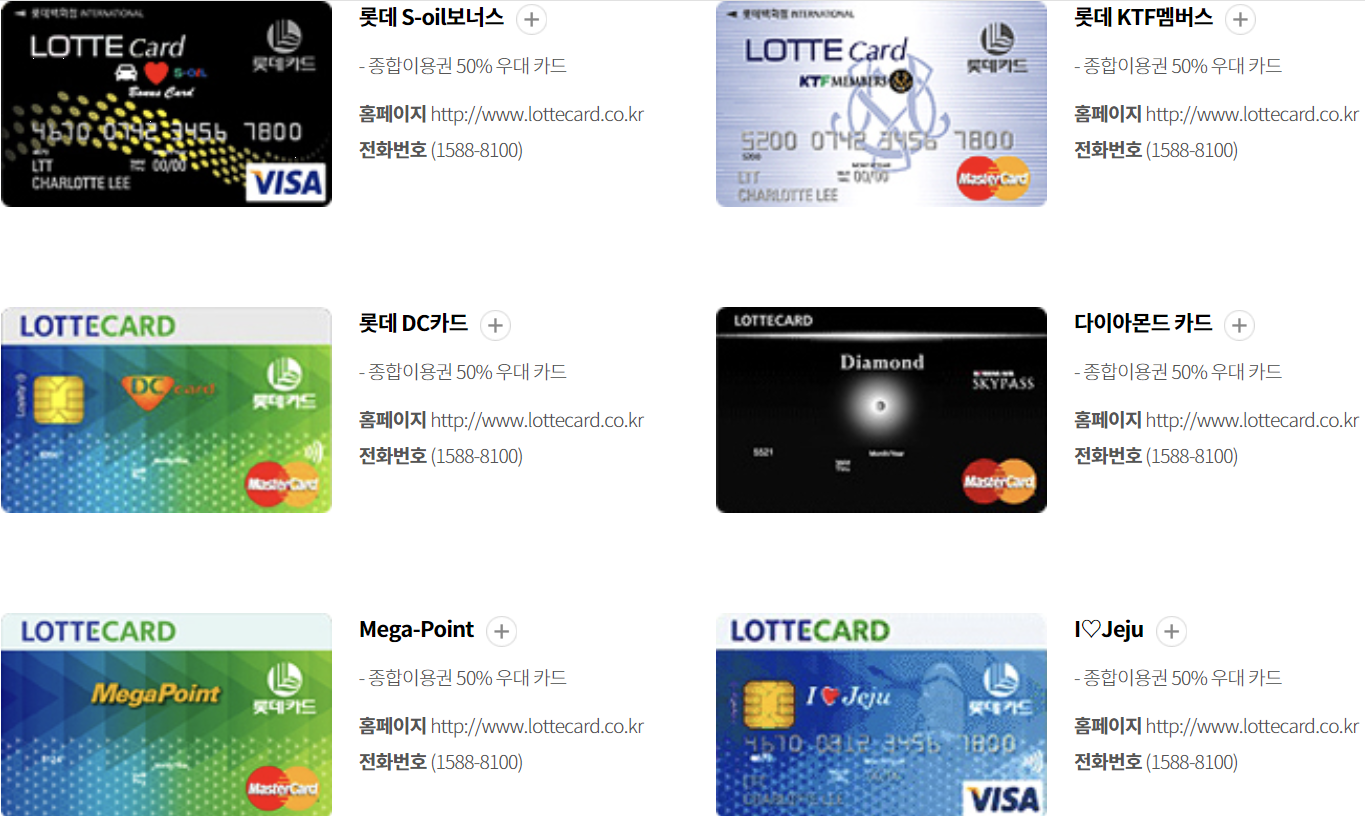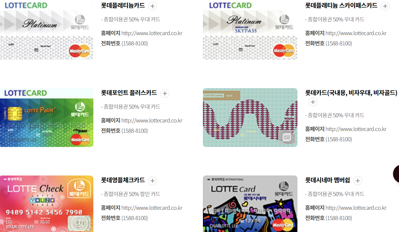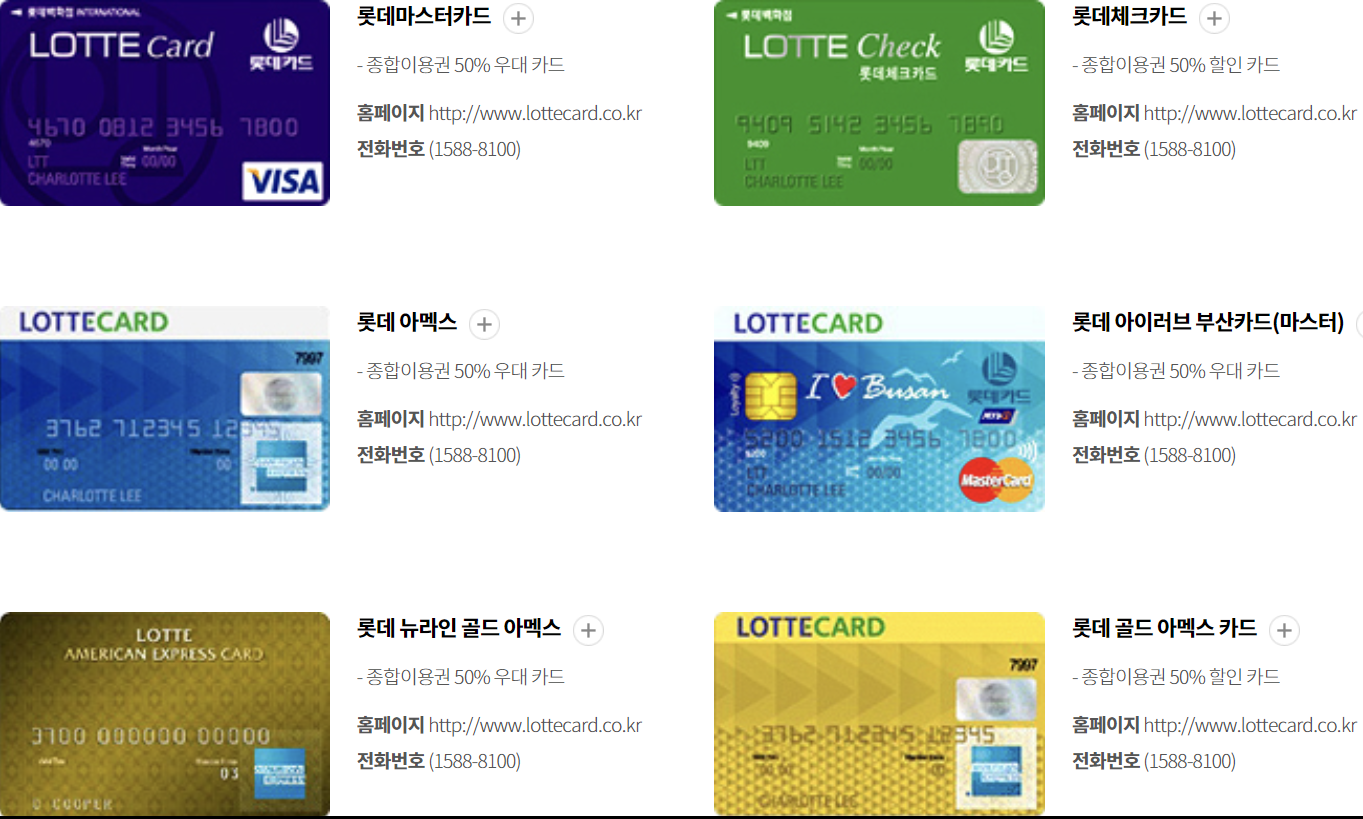 롯데카드(국내용, 비자우대, 비자골드)