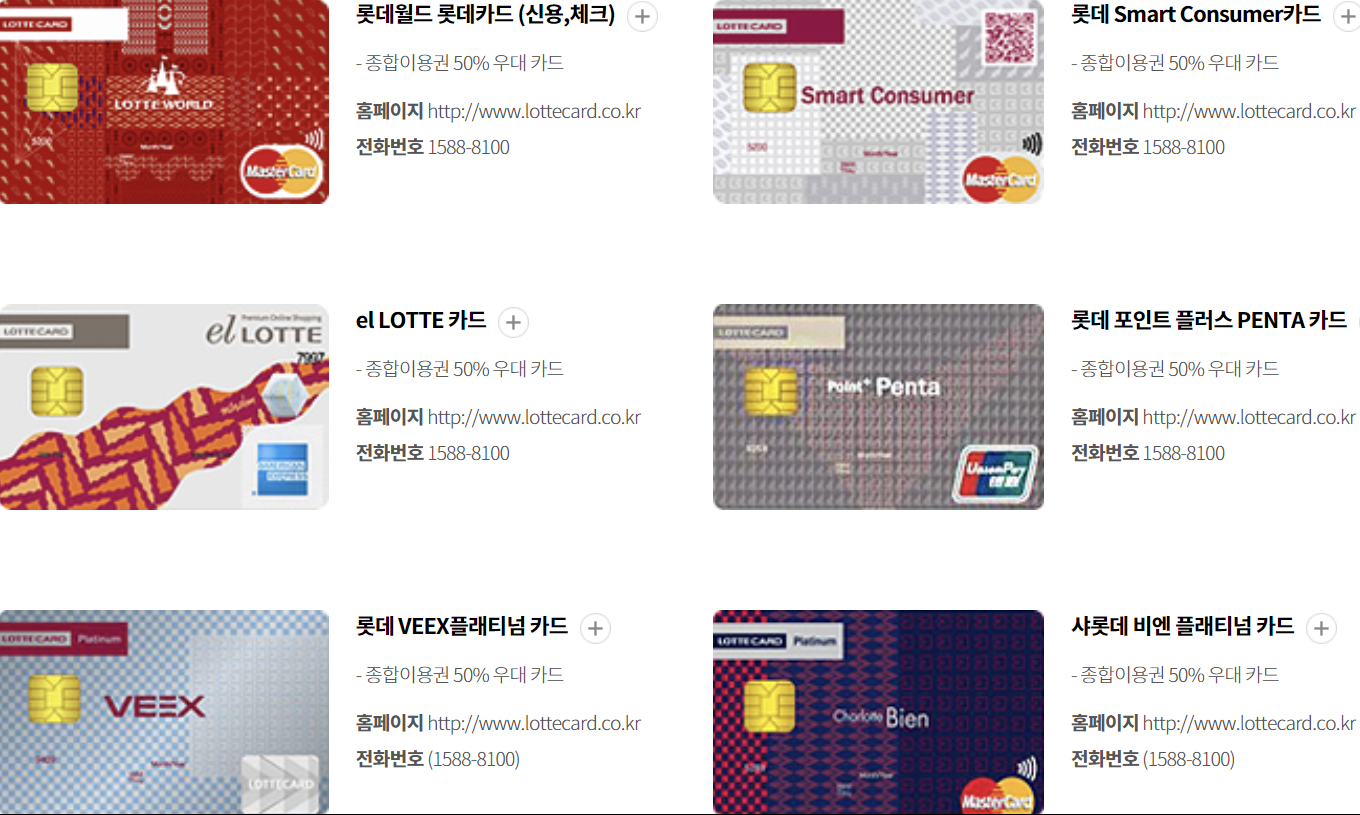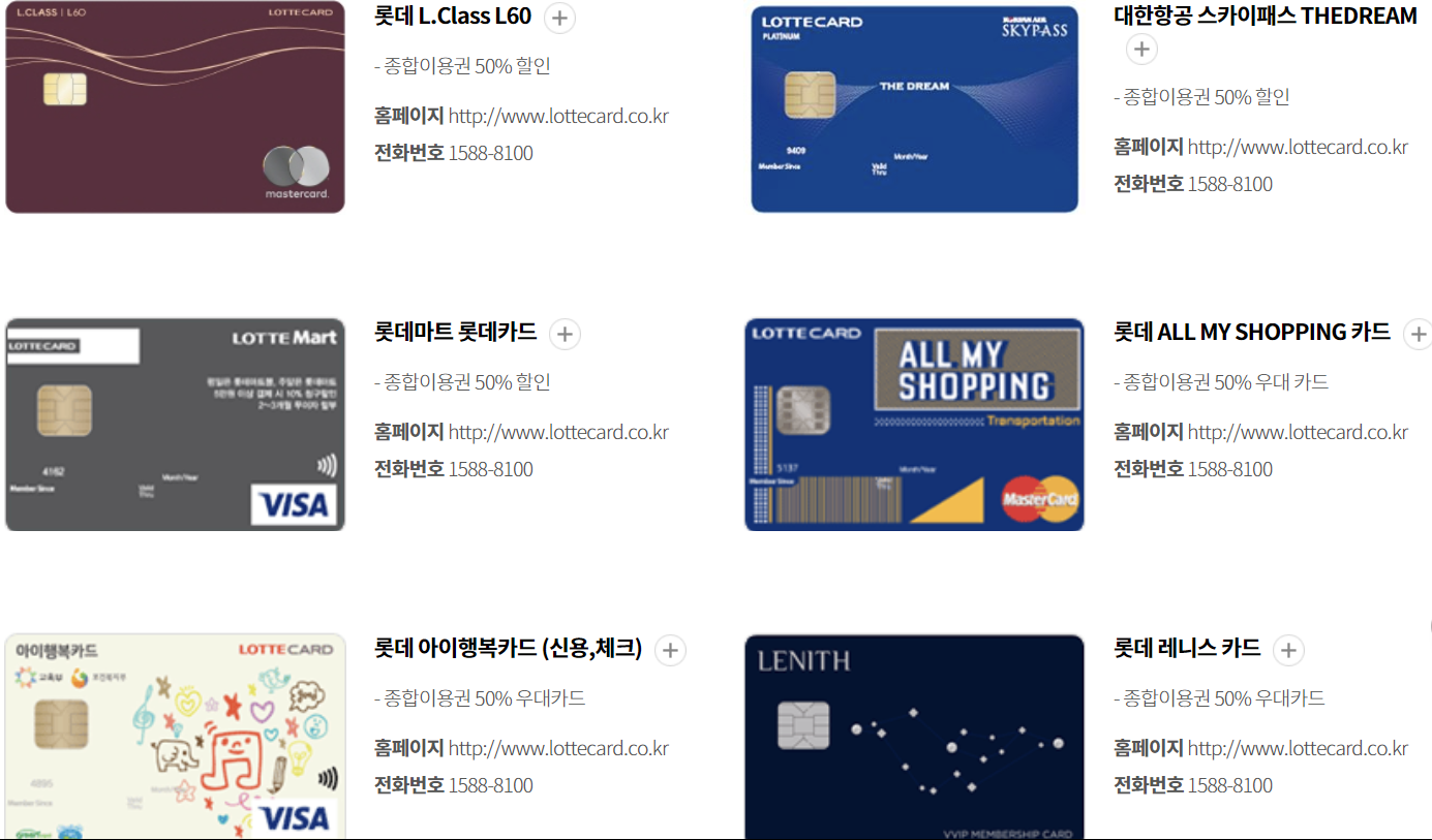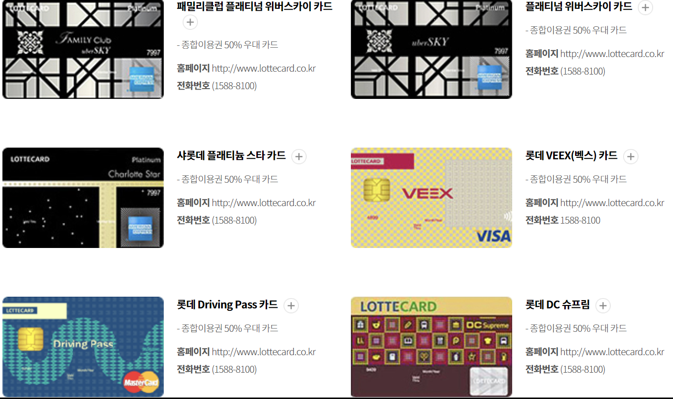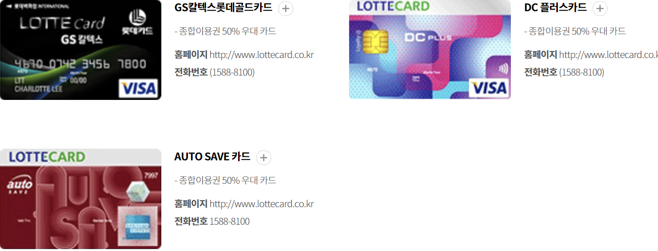 롯데카드(국내용, 비자우대, 비자골드)