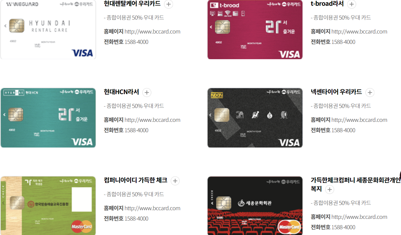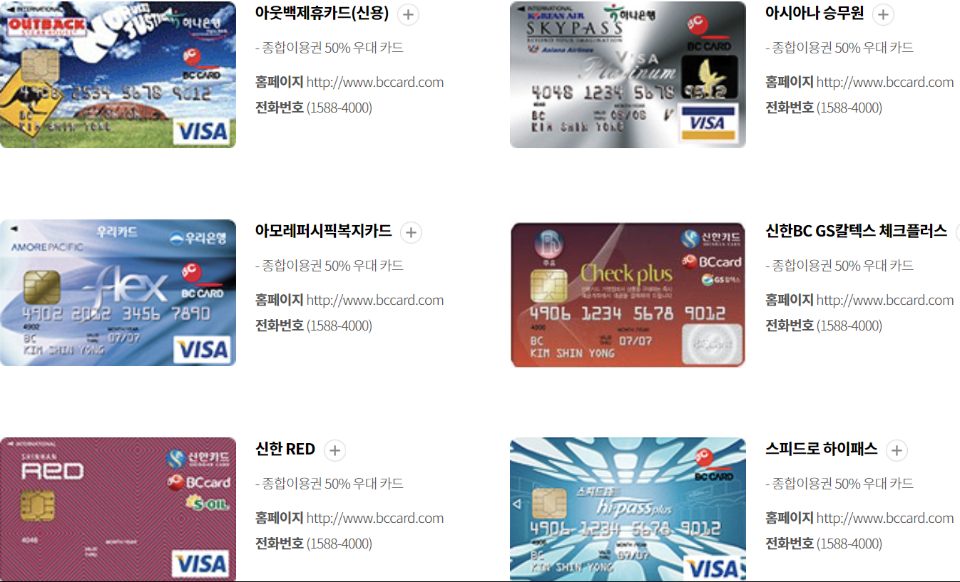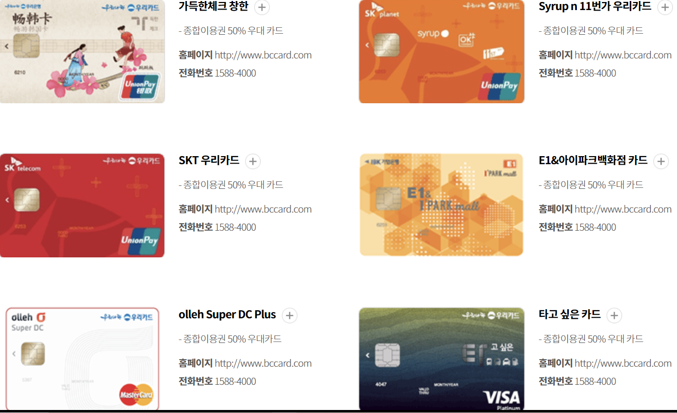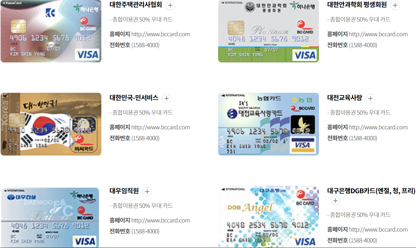 롯데카드(국내용, 비자우대, 비자골드)