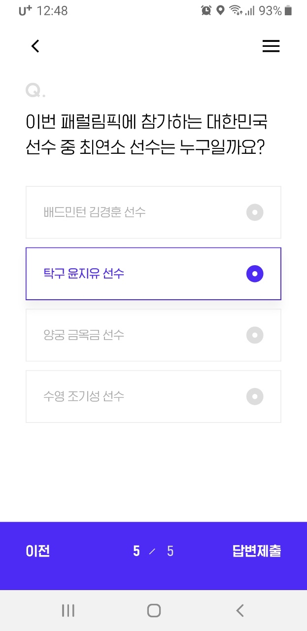 5. 이번 패럴림픽에 참가하는 대한민국 선수 중 최연소 선수는 누구일까요?