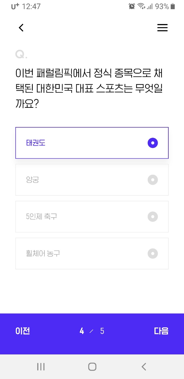 4. 이번 패럴림픽에서 정식 종목으로 채택된 대한민국 대표 스포츠는 무엇일까요?